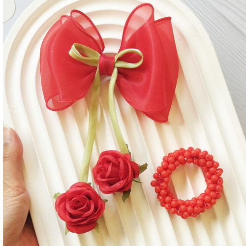 ست گلسر و کش مو قرمز دخترانه